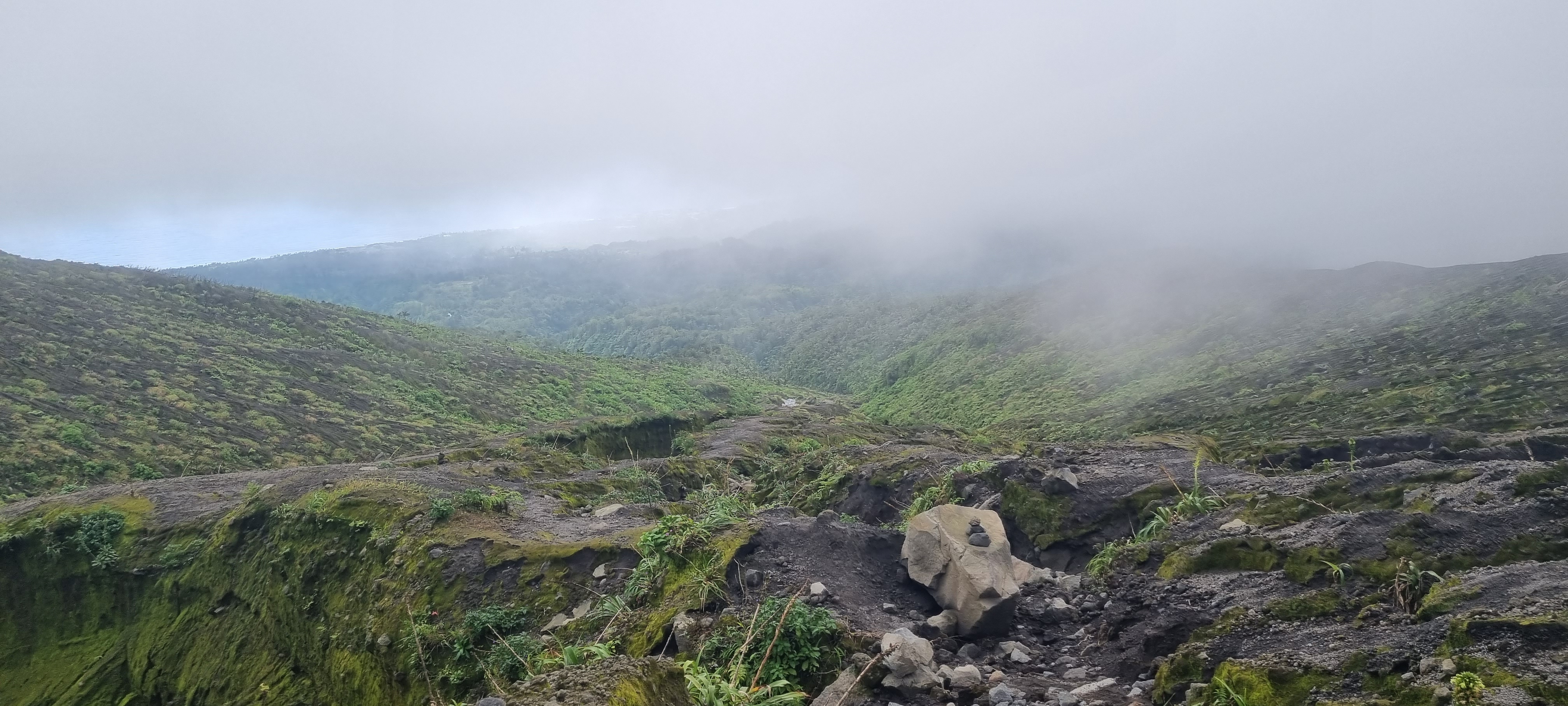Es war sehr anspruchsvoll den Vulkan in St. Vincent zu besteigen. Der Vulkan ist das letzte Mal erst 2021 ausgebrochen und die Spuren waren der Natur und den umliegenden Ortschaften anzusehen. Auf dem Weg mit dem Bus zum Berg waren zum Teil bergeweise Vulkanasche zu sehen sowie zerstörte Häuser. Der Weg gen Krater führte zunächst durch dichten Dschungel, wobei der Weg sehr gut markiert war. Irgendwann wurde die Vegetation immer weniger, da viele Pflanzen durch die Asche erstickt sind und das Leben sich erst langsam wieder einen Weg bahnt. Der Wanderguide erzählte zum Beispiel, dass jetzt erst langsam die Tiere (wie zum Beispiel Kolibris) auf den Berg zurückkehren. Der Weg zum Gipfel war sehr anspruchsvoll und führte über Steine und Geröll – Spuren des Ausbruchs. Am Krater angekommen machte mich der Ausblick ehrfürchtig. Der Krater ist mehr als eine Meile groß. Es ist die höchste Erhebung der Insel und der Atlantik und das karibische Meer zeitgleich zu sehen. Die Luft ist von Schwefel angereichert.